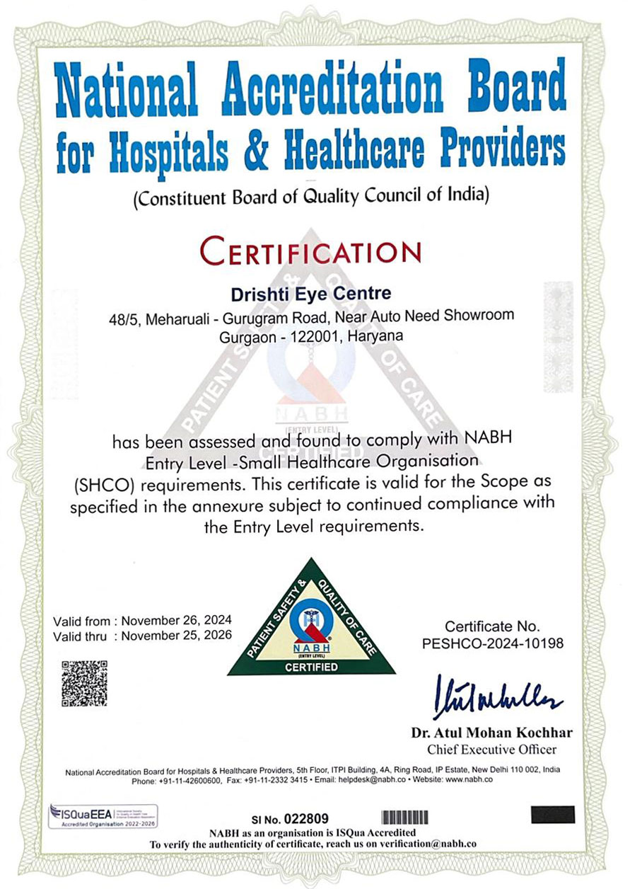 Drishti Eye Centre is a full service eye centre located in the heart of Gurgaon near Main Post Office and Bus Stand on the new Railway Road. Esablished in Jan 1998, the centre is been run by Drs Dheeraj & Rupal Gupta Senior Consultants each with an experience of more than 20 years in the field of Ophthalmology.